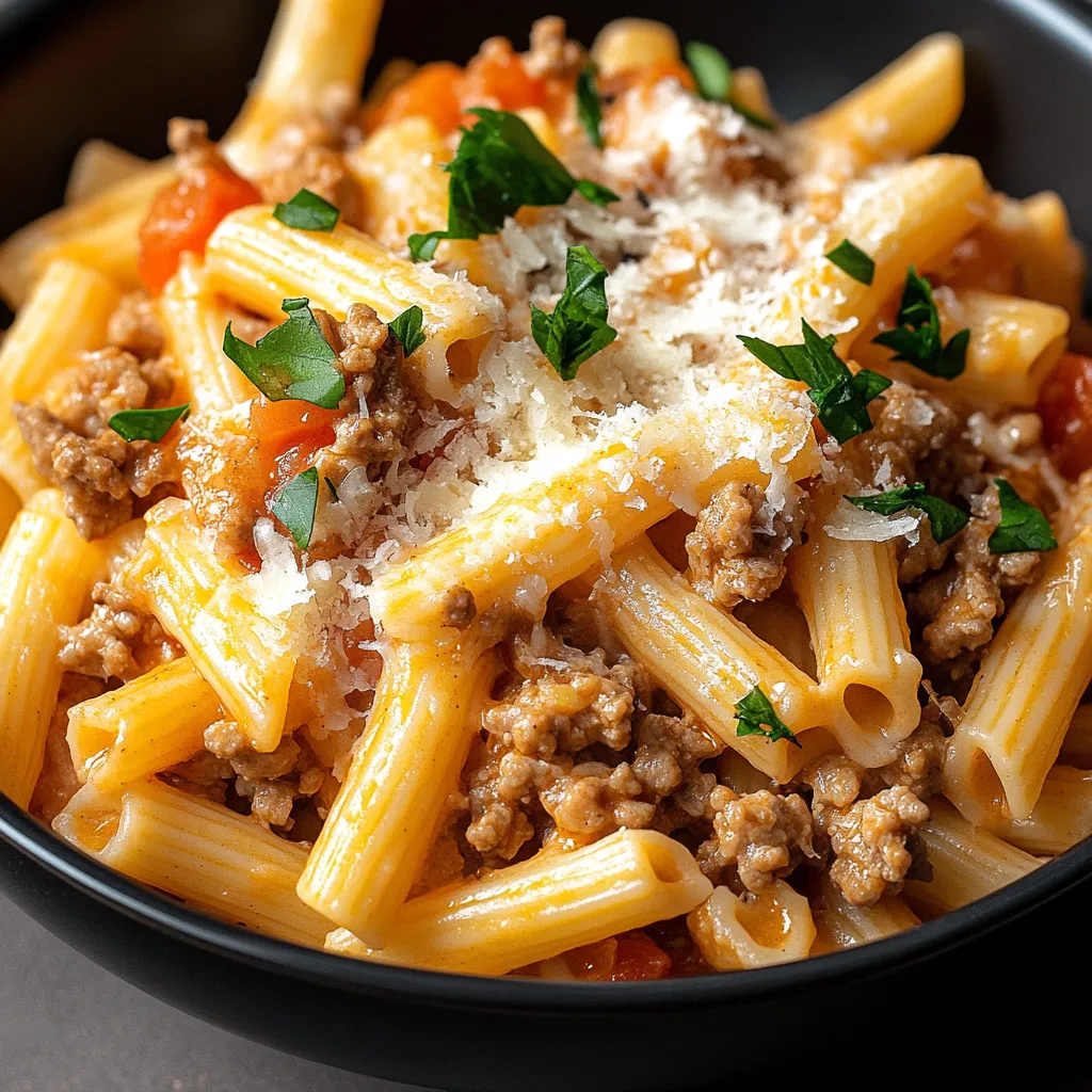 Ground turkey might not be the first protein that comes to mind for pasta, but when cooked properly with the right seasonings and folded into a rich, cheesy tomato sauce, it becomes incredibly flavorful. The addition of half-and-half creates a luxurious texture that coats every piece of penne, while the double cheese blend adds depth and that irresistible stretchy quality everyone loves.