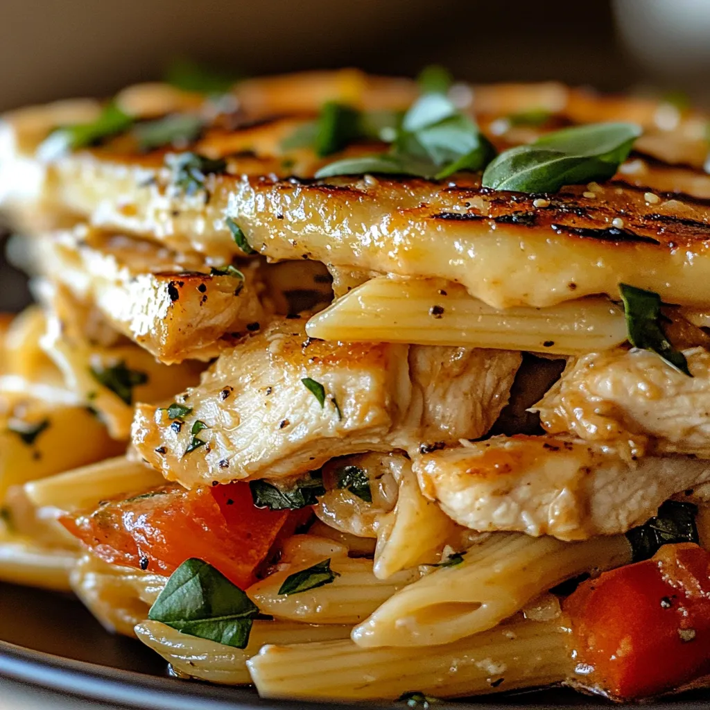 Drain the pasta and add it directly into the skillet with the chicken and sauce. Toss thoroughly until the pasta is fully coated. Use the reserved pasta water, adding it splash by splash, to slightly thin the sauce and achieve the perfect consistency.